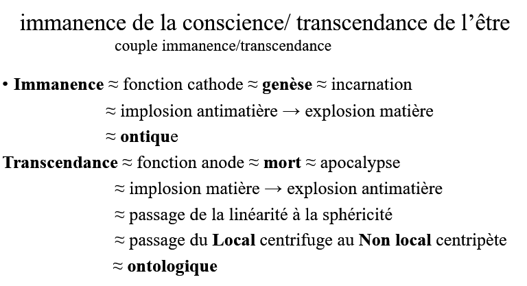 Le mot Transcendance ≈ anode ≈ mort de la matière