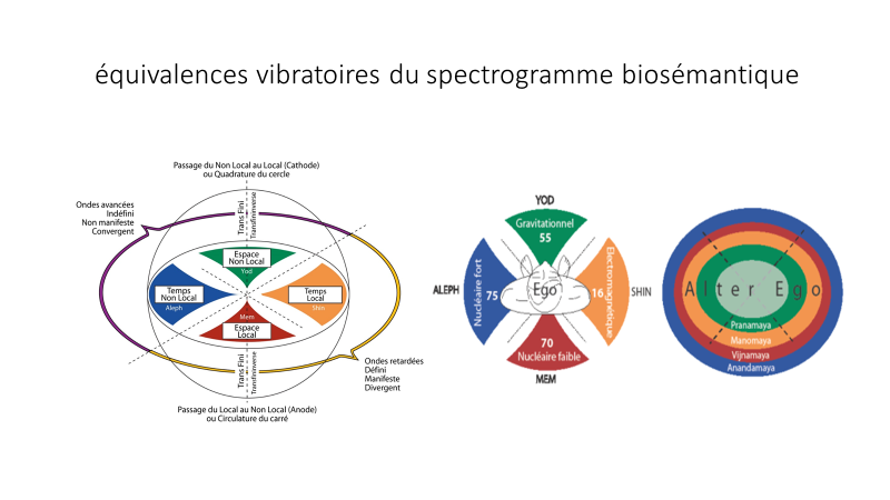La spectroscopie par résonance biosémantique vasculaire révèle l’équivalence vibratoire et opératoire de différents termes. Cette homologie traduit une résonance fractale ou la présence d’un principe commun à des à des formes extérieures différentes. Plus un principe est abstrait, plus il est universel.