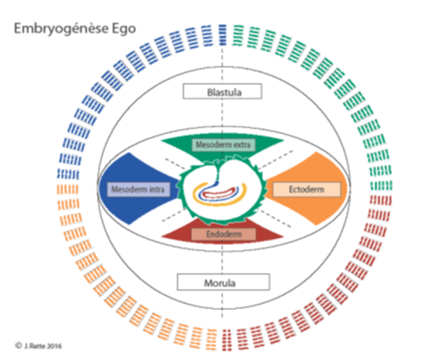 La résonance biosémantique est une résonance tissulaire. Équivalence de chaque zone de résonance pigmentaire avec un tissu embryologique. Chaque tissu embryologique résonne avec un secteur des hexagrammes.