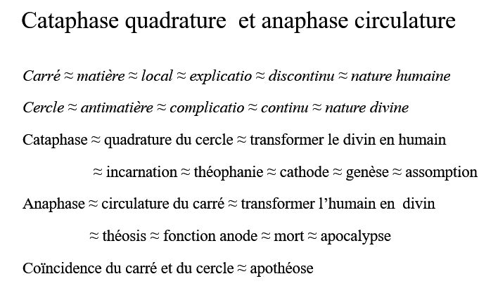 Quadrature du cercle est équivalente vibratoire de cathode et circulature du carré est équivalente d’anode.